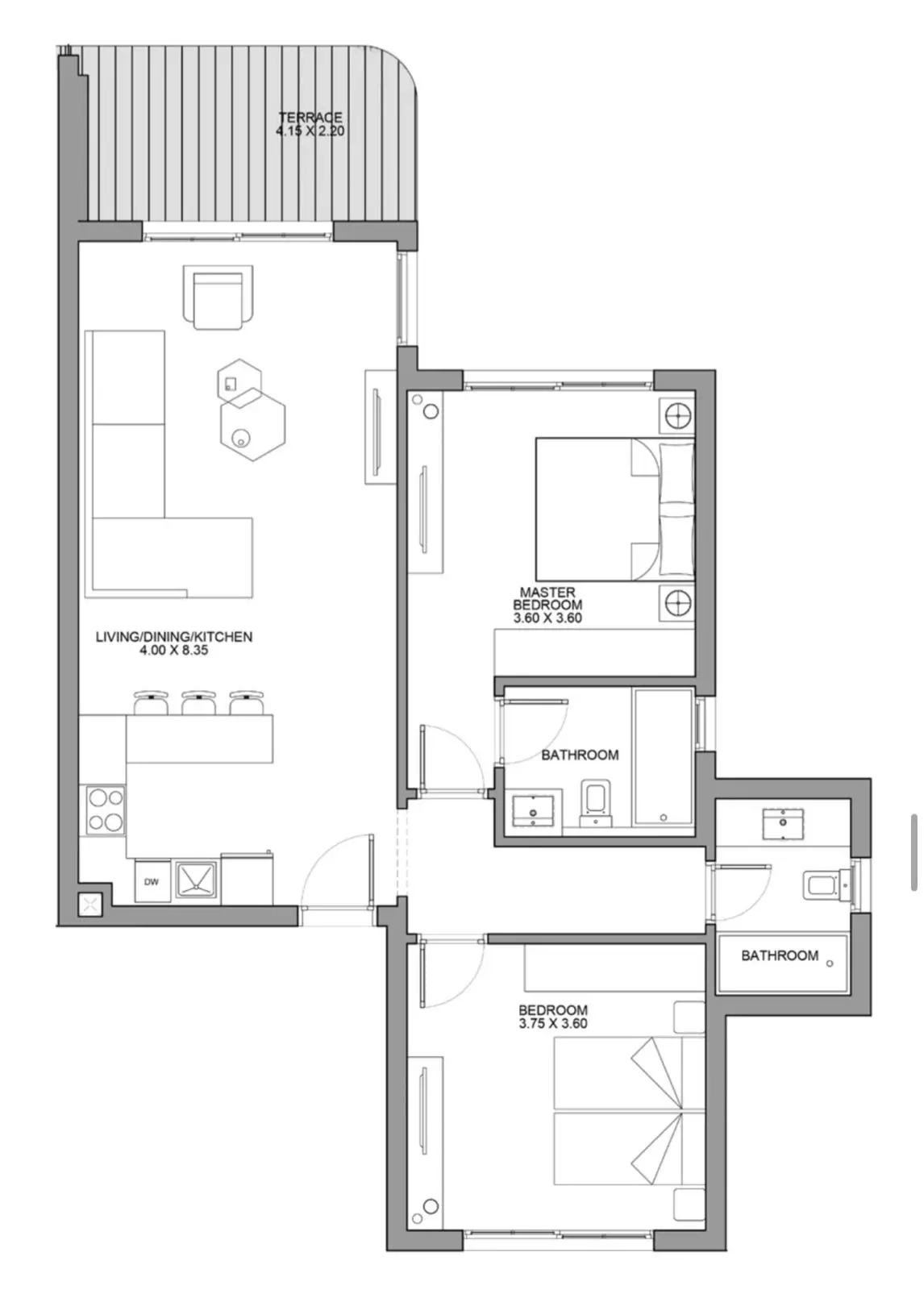 Chalet for sale, 70 sqm, in The Greek Marassi, 1 room, 1 bathroom, with reception and terrace, overlooking open view